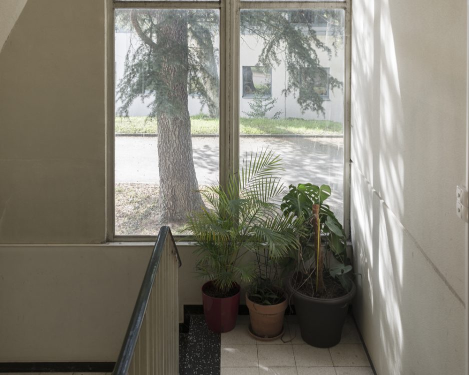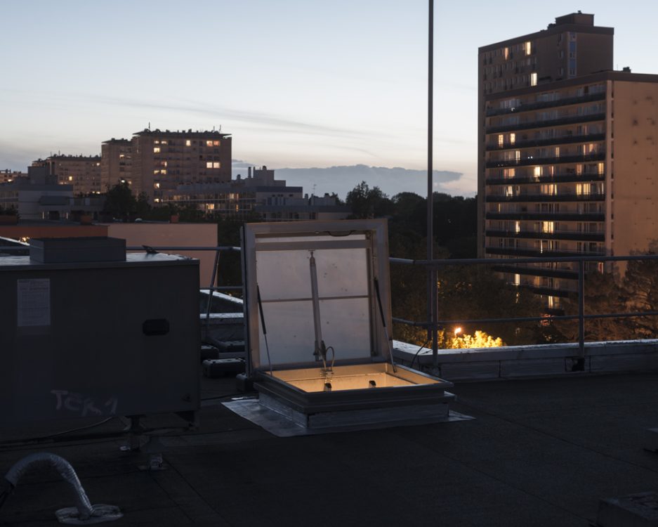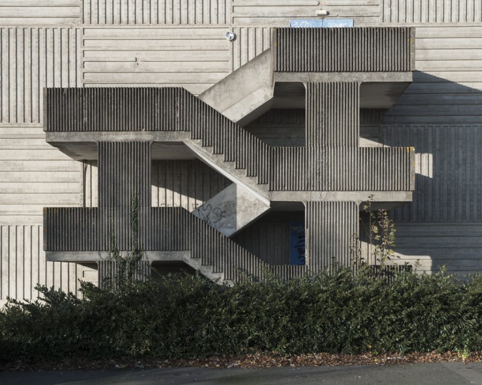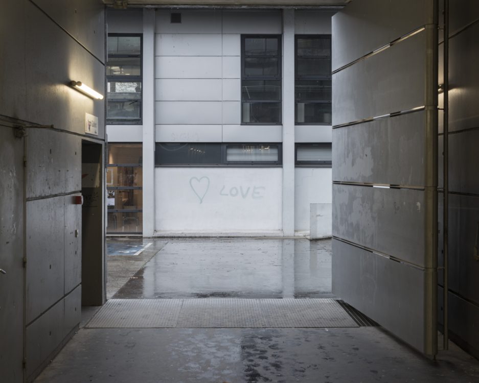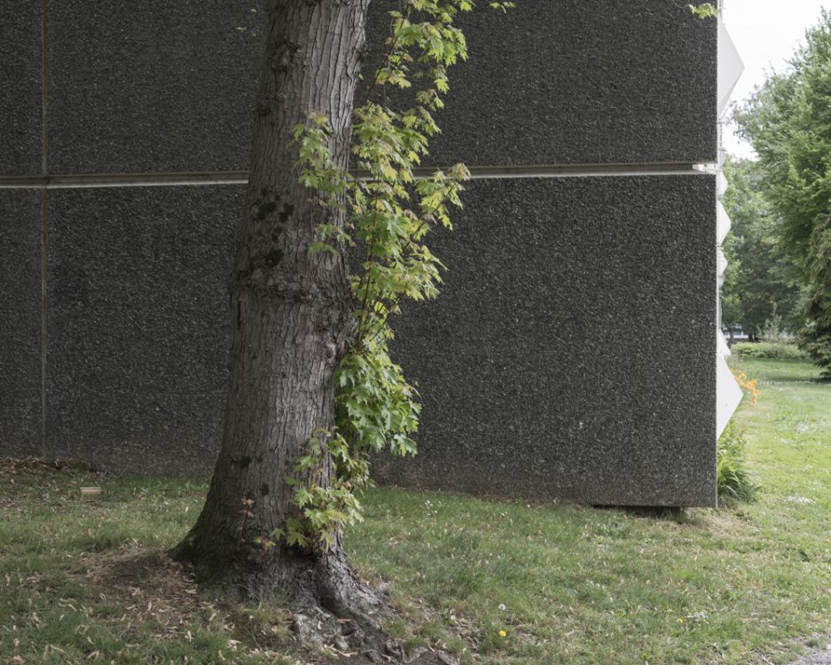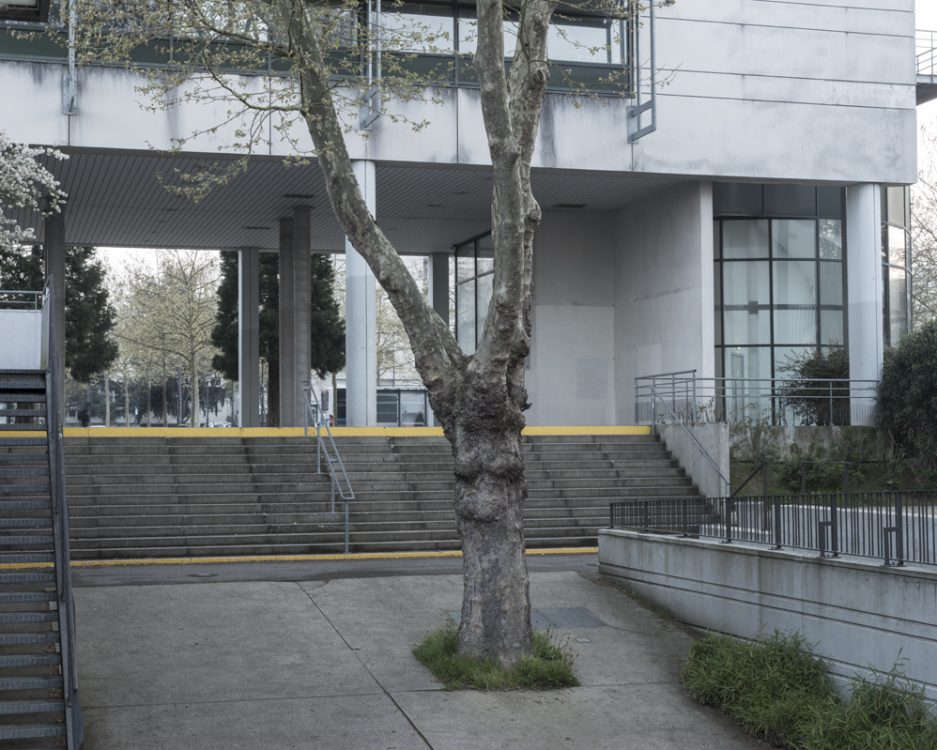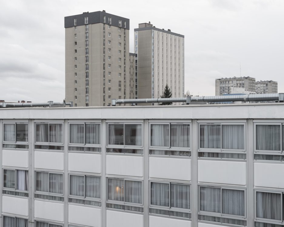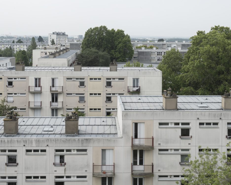 From 1968 to 1990, Marc Loyon grew up in one of the buildings on Rue du Bourbonnais, which runs alongside the Kennedy slab, the heart of Villejean surrounded by blocks of flats. From October 2018 to June 2019, he returned to explore the neighbourhood. From his experience as a photographer for the inventory department, he retained a taste for architectural photography, which he has extended to urban landscapes since 2014. But here, there is no systematic shooting method or protocol with the aim of creating a typology of buildings. Starting from the main thoroughfares of Cours Kennedy, Avenue Gaston Berger, Avenue Winston Churchill and Boulevard d’Anjou, Marc Loyon did not set out to explore Villejean as a territory to be studied in order to report on what should be preserved for its heritage value. He freed himself from the lexicon and logic of archiving. He revisited the neighbourhood with the memory of someone who grew up there…