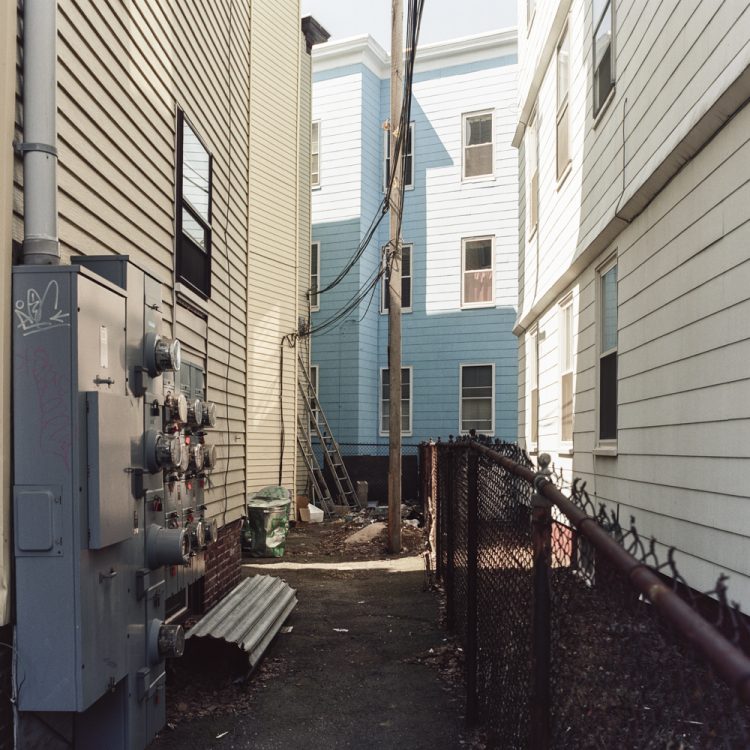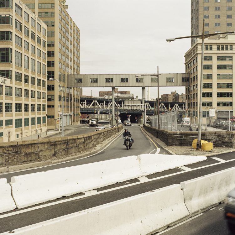 Ces lieux entre downtown et suburbs sont loins des dynamiques de métropolisation où se confondent habitat, fonction, transport… La démarche photographique prend un caractère alors sociologique: une représentation de lieux que l’on ne montre pas, en marge de la cité. Cette série photographique n’a pas pour but de produire un état descriptif de l’architecture de cette partie des villes de New York, Boston ou Los Angeles, mais d’orienter le regard vers une représentation esthétique de l’aménagement de ces lieux et de réfléchir sur la trame et l’évolution de cet aménagement.